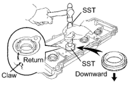 (a) Using SST and a hammer, tap in a new gasket until its surface is flush with the upper edge of the cylinder head cover.