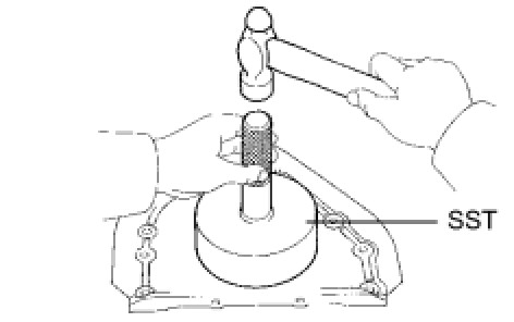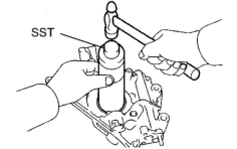 (2) Using SST and a hammer, tap in a new tight plug as shown in the illustration.