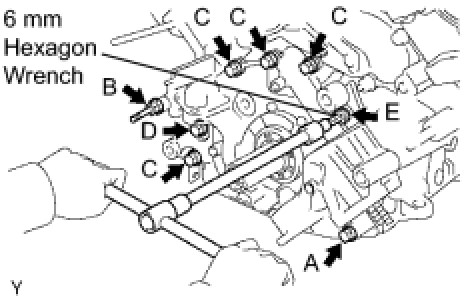 For bolts A, B, C and E - Torque: 16 Nm (160 kgf-cm, 11 ft-lbf)