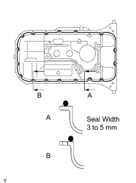 (b) Apply seal packing to the No. 1 oil pan as shown in the illustration.