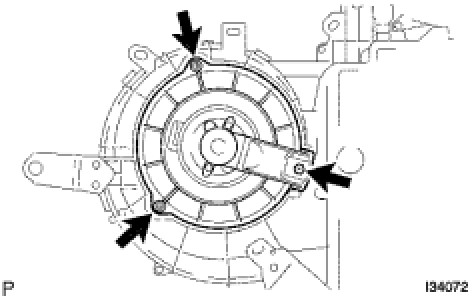 (a) Install the blower w/ fan (rear) motor sub-assembly with the 3 screws.
