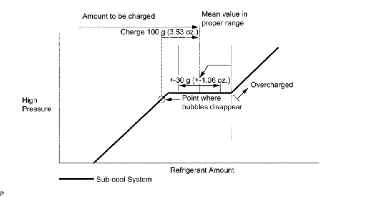 - Approximately 100 g (3.53 oz.) of refrigerant may need to be charged after bubbles disappear.