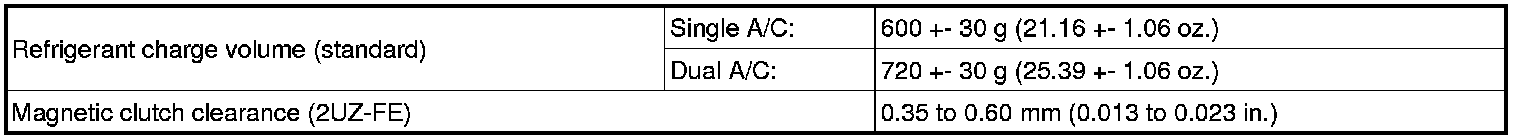 SERVICE SPECIFICATIONS: AIR CONDITIONING: SERVICE DATA