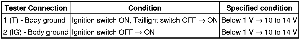 (c) Check the resistance between terminal 4 (RV) and terminal 3 (T) when operating the light control rheostat volume knob. Also, check that the resistance changes continuously.