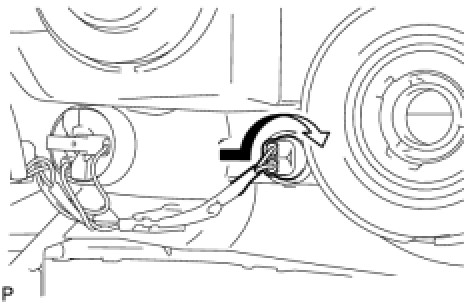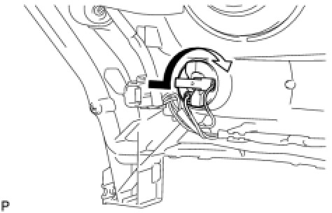 (b) Turn the front side marker light bulb and headlight cord in the direction indicated by the arrow and install them as a unit.