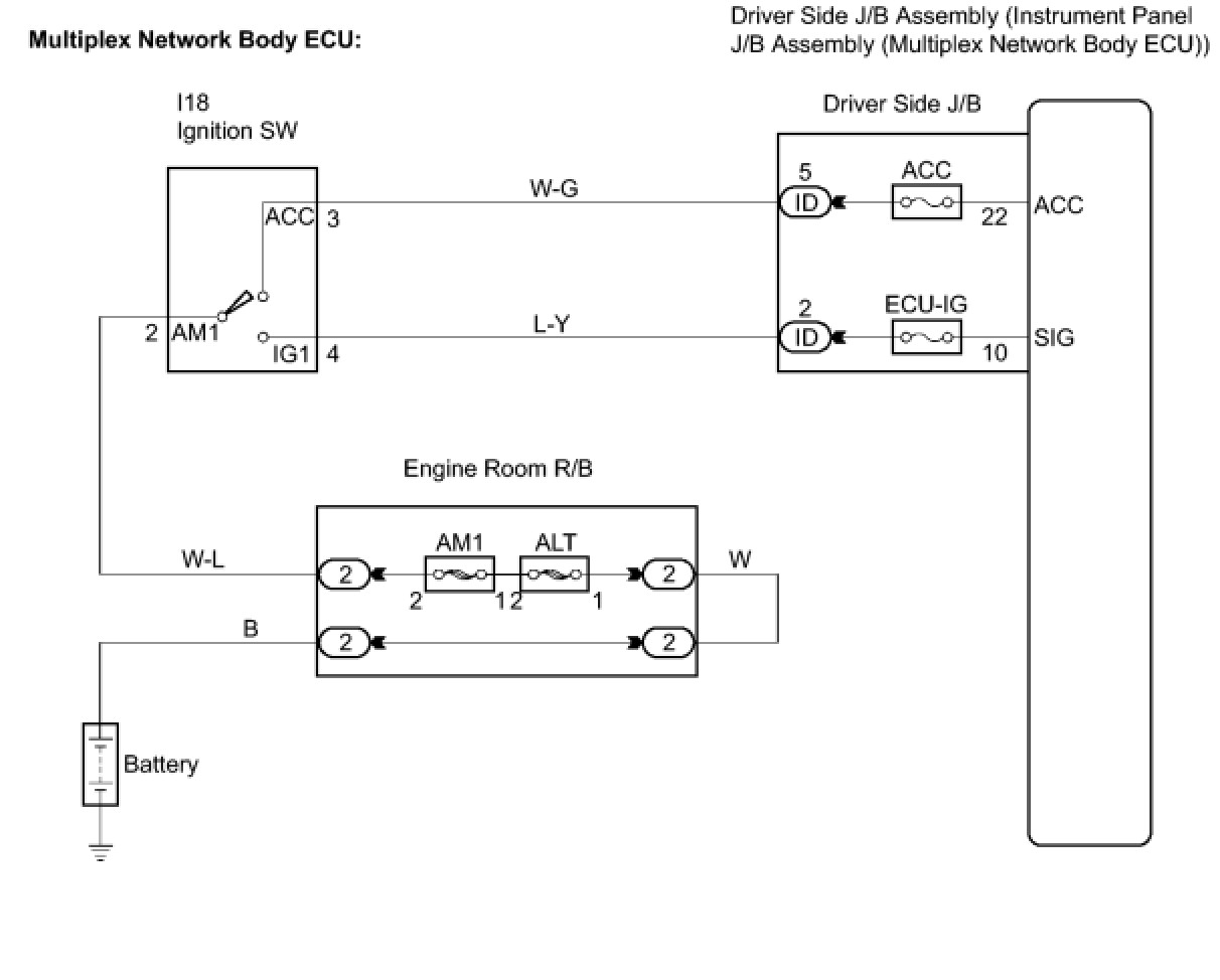 This circuit detects the state of the ignition switch and sends it to the Multiplex Network Body ECU and Multiplex Network Body ECU No. 2.