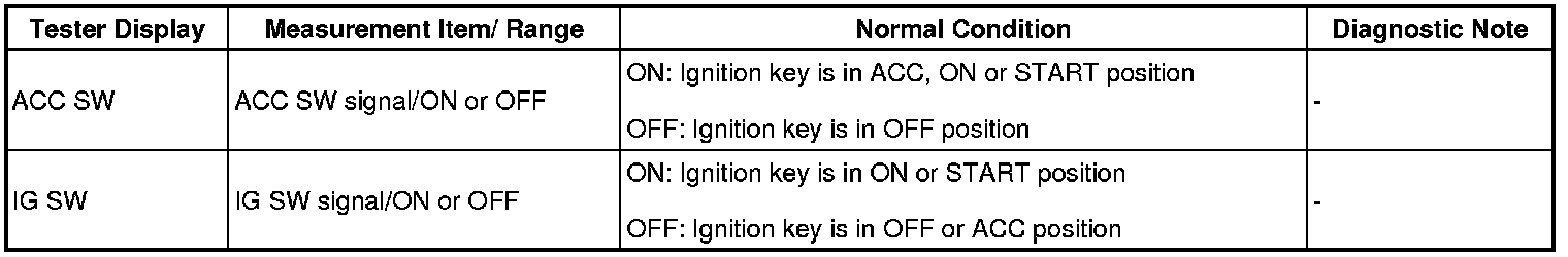 OK -- READ VALUE USING TECHSTREAM (IGNITION SWITCH)