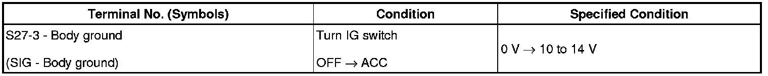 (b) Check continuity between terminal ACC, SIG of the instrument panel J/B assembly (driver side J/B assembly) on the wire harness side and body ground.