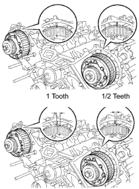 1/2 teeth turn for the left bank camshaft timing pulley