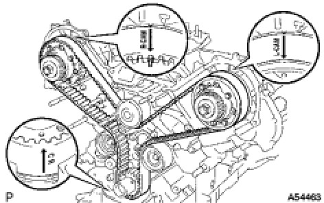 If the timing marks are not aligned, remove the timing belt and reinstall it.