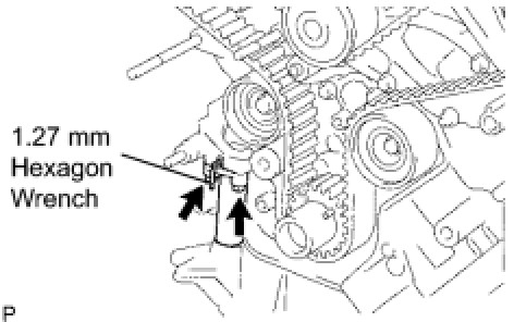 (3) Using pliers, remove the 1.27 mm hexagon wrench from the chain tensioner.
