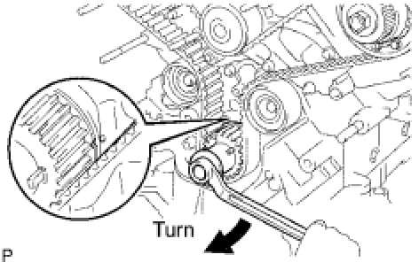 (1) Using the crankshaft damper bolt, slowly turn the crankshaft pulley 2 revolutions from the TDC to TDC.