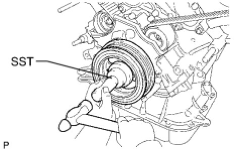 (b) Using SST and a hammer, tap in the crankshaft damper.