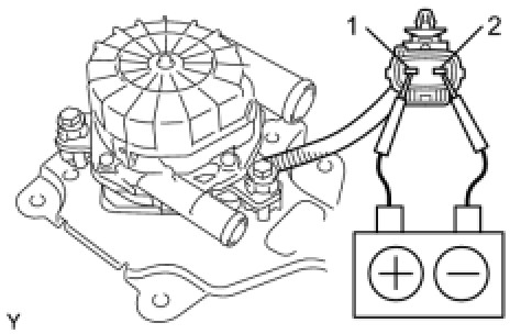 (a) Connect the positive (+) lead from the battery to terminal 1 and the negative (-) lead to terminal 2, and check that air flows.