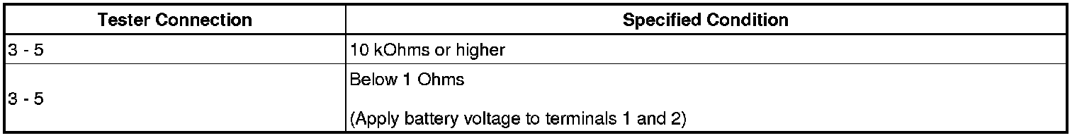 If the result is not as specified, replace the circuit opening relay.