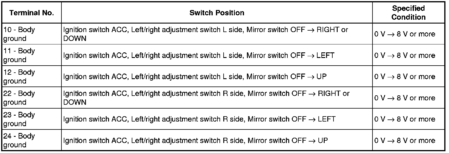If the result is not as specified, replace the mirror control ECU assembly.