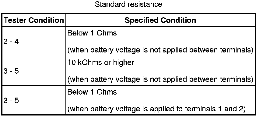 If the result is not as specified, replace the relay.