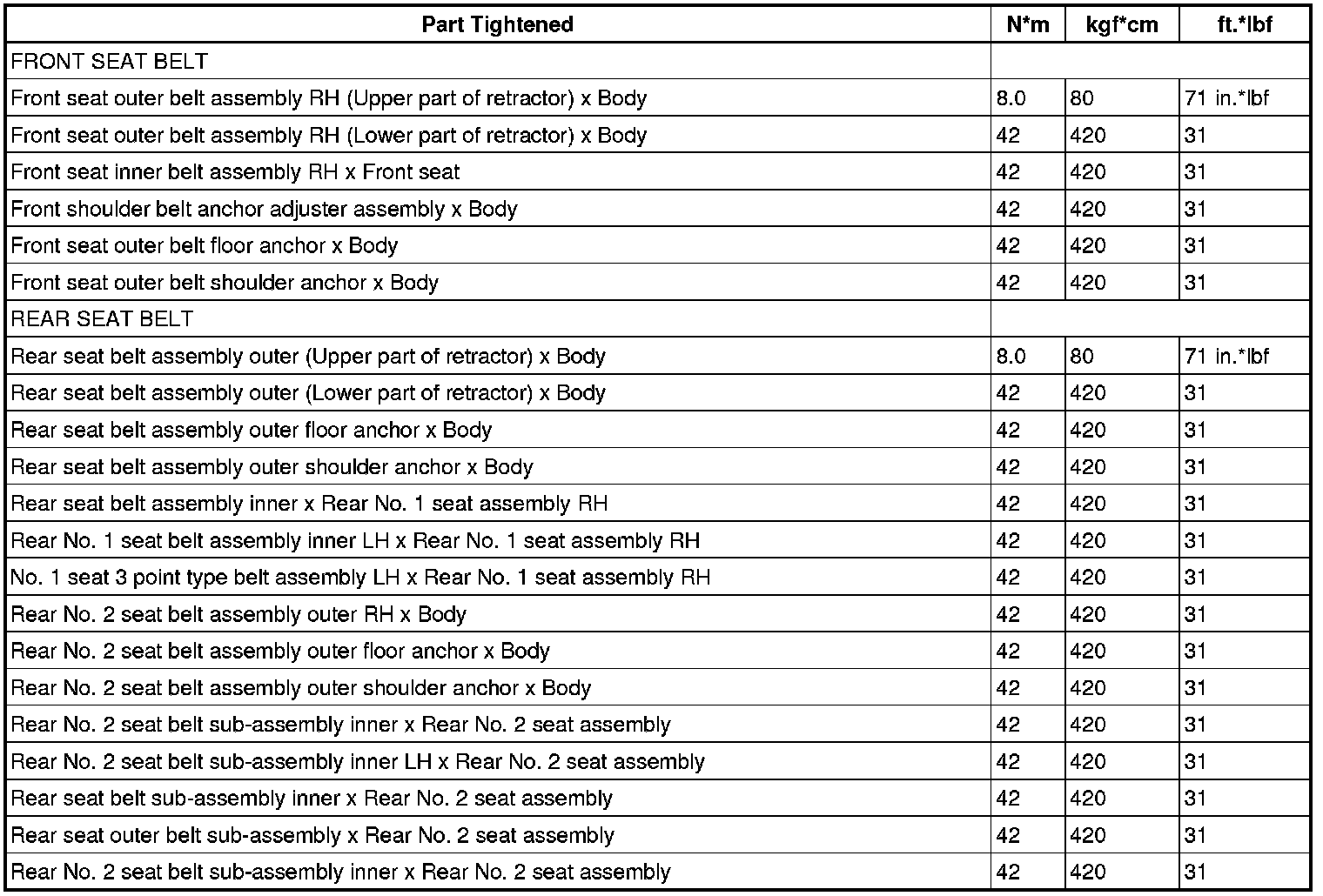 : TORQUE SPECIFICATIONS