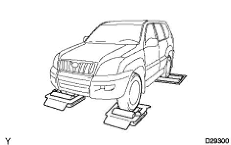 (2) Position the front wheels on the free roller or jack them up.