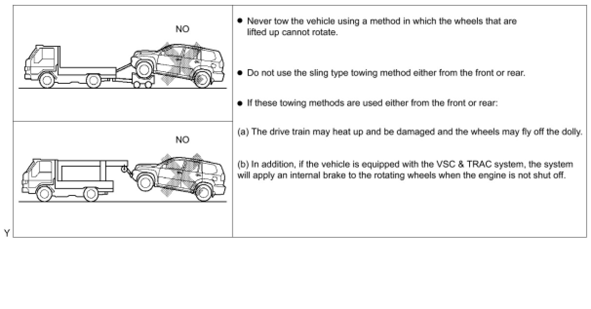 - The towing methods shown below are dangerous and can damage the vehicle, so do not use them.