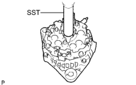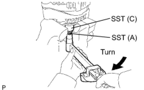 (e) Insert SST (B) into SST (C), and attach the pulley nut to SST (C).