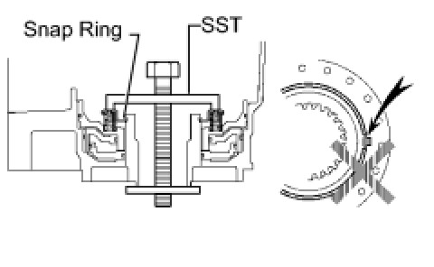 (c) Using SST and press, install the snap ring.