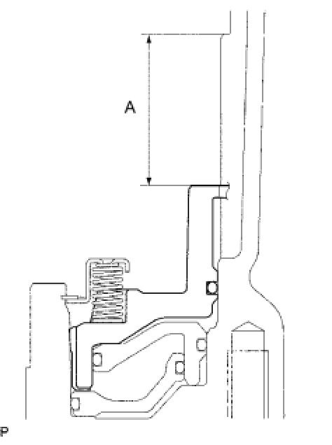 (b) Using vernier caliper, measure the level difference (length A) between the upper surface of the 1st and reverse brake piston and the hitting surface of the No. 4 brake flange at both ends across a diameter, and calculate the average.