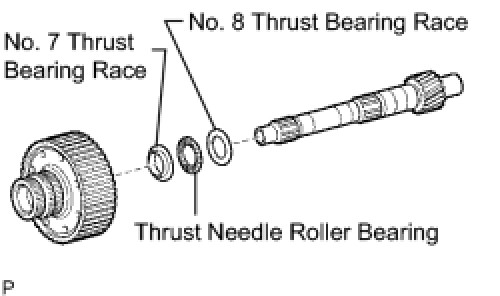 (a) Install the No. 8 thrust bearing race, thrust needle roller bearing, No. 7 thrust bearing race and planetary ring gear flange to the intermediate shaft.