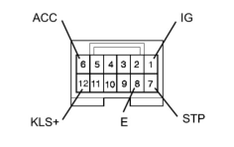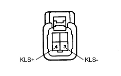(b) Connect KLS+ (4) terminal to the batteries' positive (+) terminal and KLS (3) terminal to the battery negative (-) terminal, and apply about 12 V between KLS+ - KLS- terminals.