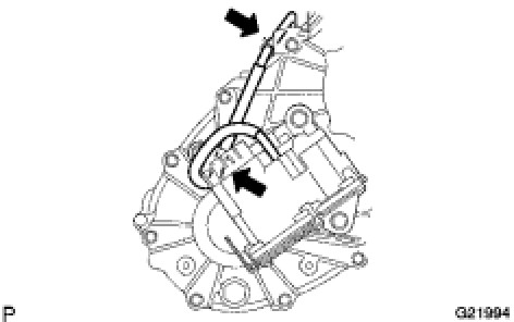 - Place the hose that passes between the transfer rear case and the actuator motor.