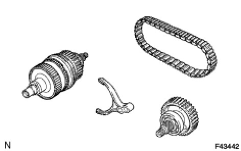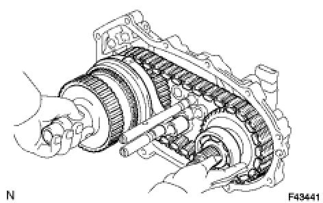 - Check that the rear output shaft sub-assembly and driven sprocket sub-assembly turn lightly.