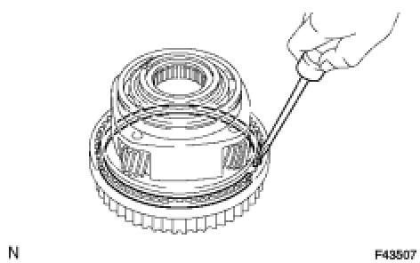 (b) Using a screwdriver and hammer, drive in the 2 snap rings.