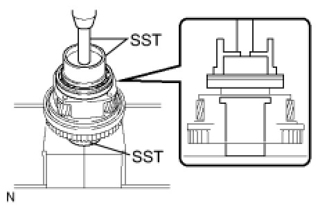 (a) Using SST and a press, install a new input gear radial ball bearing.