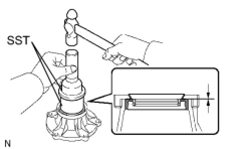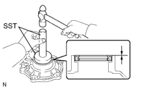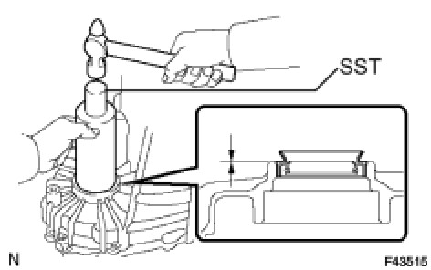 (a) Using SST and a hammer, drive in a new oil seal until its surface is flush with the housing upper surface.