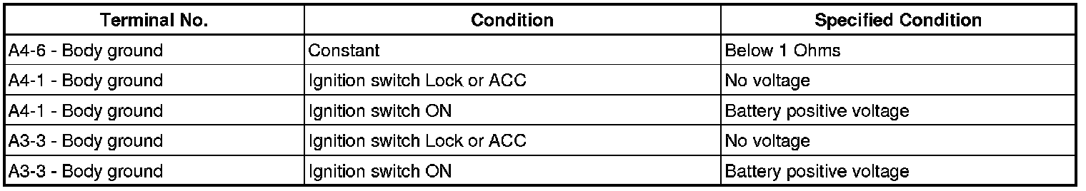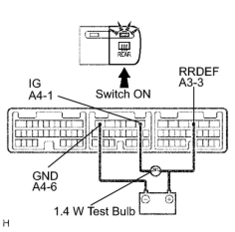 (2) Connect the positive (+) lead from the battery to terminal A4-1 through a 1.4 W test bulb.