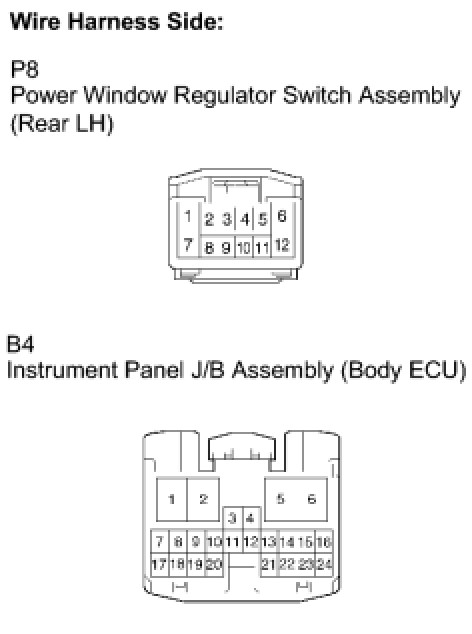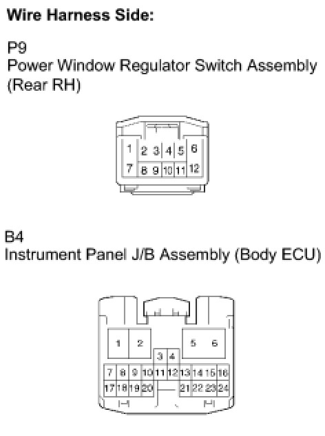 12. CHECK WIRE HARNESS (POWER WINDOW SWITCH - BODY ECU)