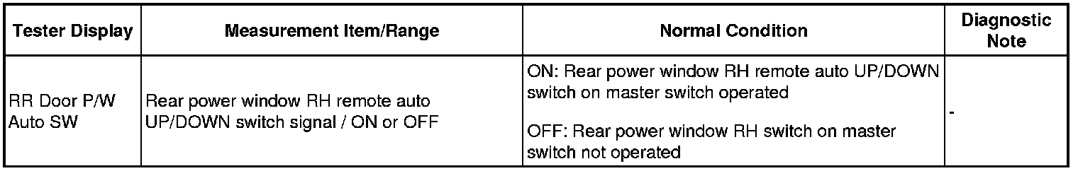 HINT: Check which power window cannot be operated, and then proceed with the troubleshooting for the applicable power window as shown in the table below.