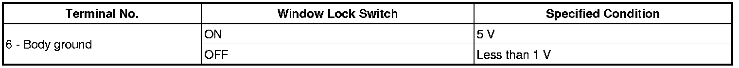(c) Check the voltage between terminal 6 and the body ground when operating the window lock switch on the master switch.