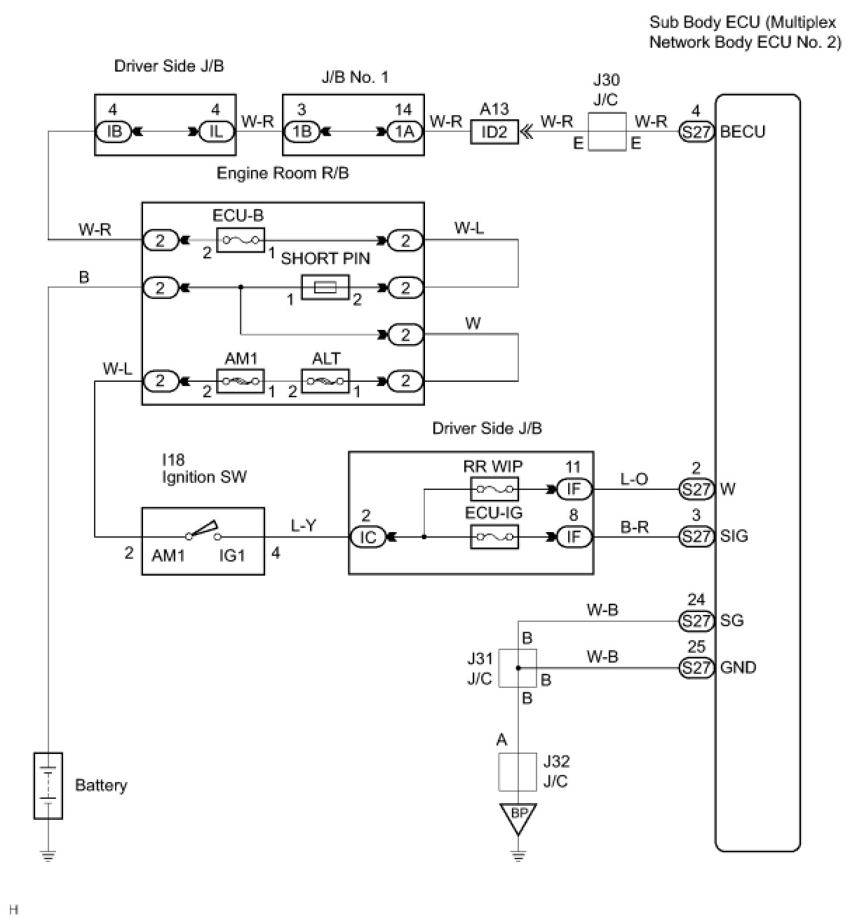 Main Body ECU Power Source Circuit