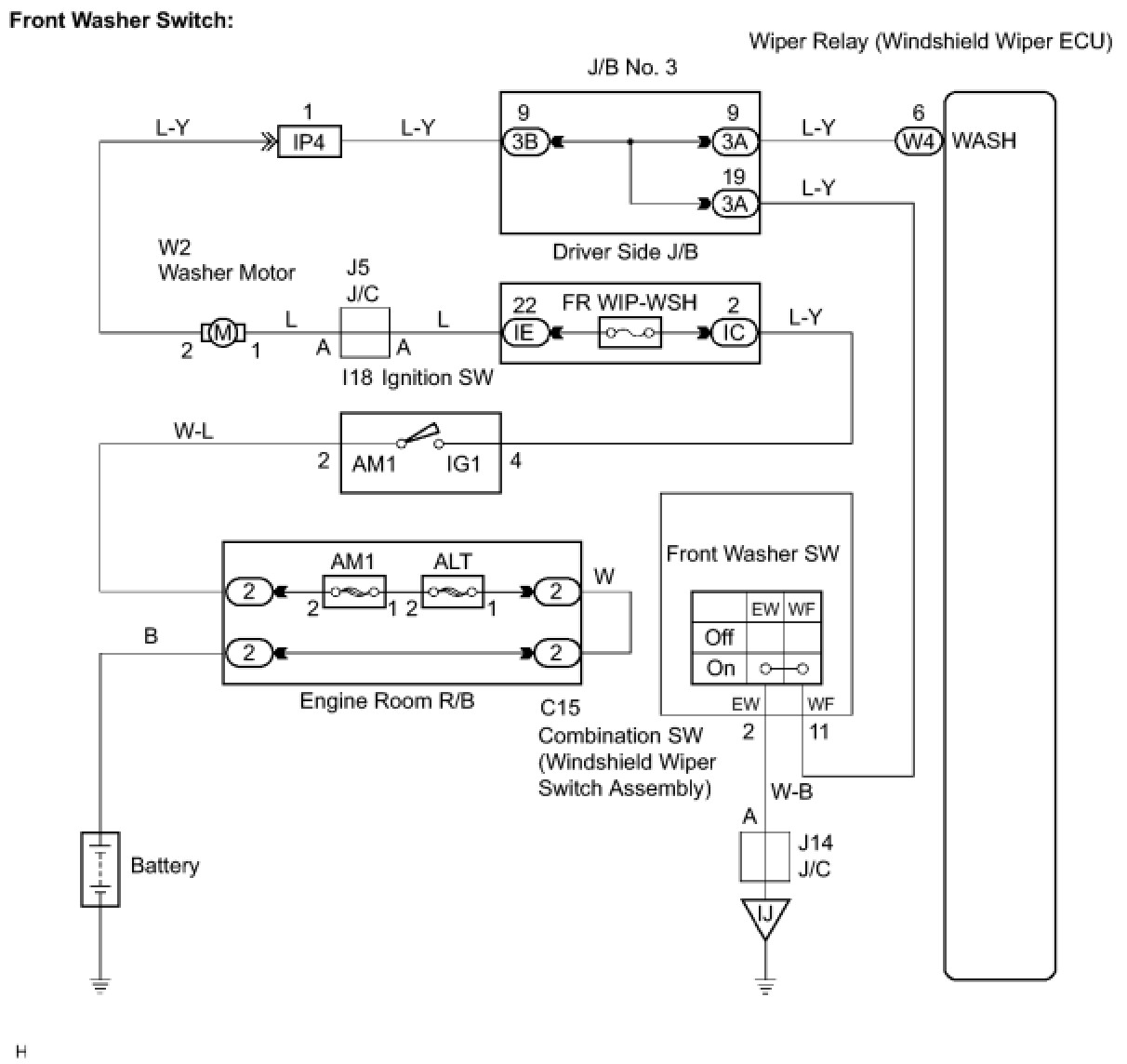 Ignition switch ON and front washer switch OFF