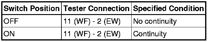 (1) Check the continuity of each terminal of the windshield wiper switch.
