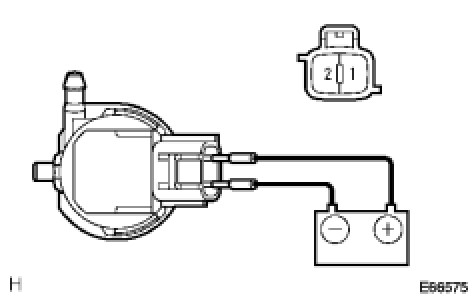 (2) Connect the battery (+) to terminal 1 of the washer motor and the pump and the battery (-) to terminal 2 of the washer motor and the pump. Check that the water comes out from the washer jar.