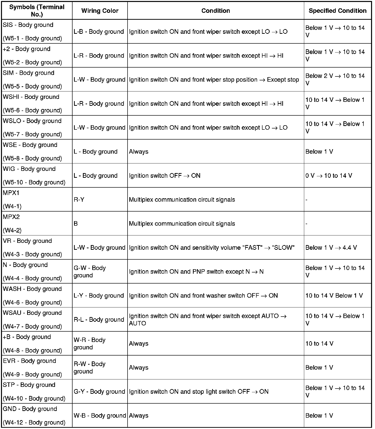 WIPER AND WASHER: WIPER AND WASHER SYSTEM: TERMINALS OF ECU