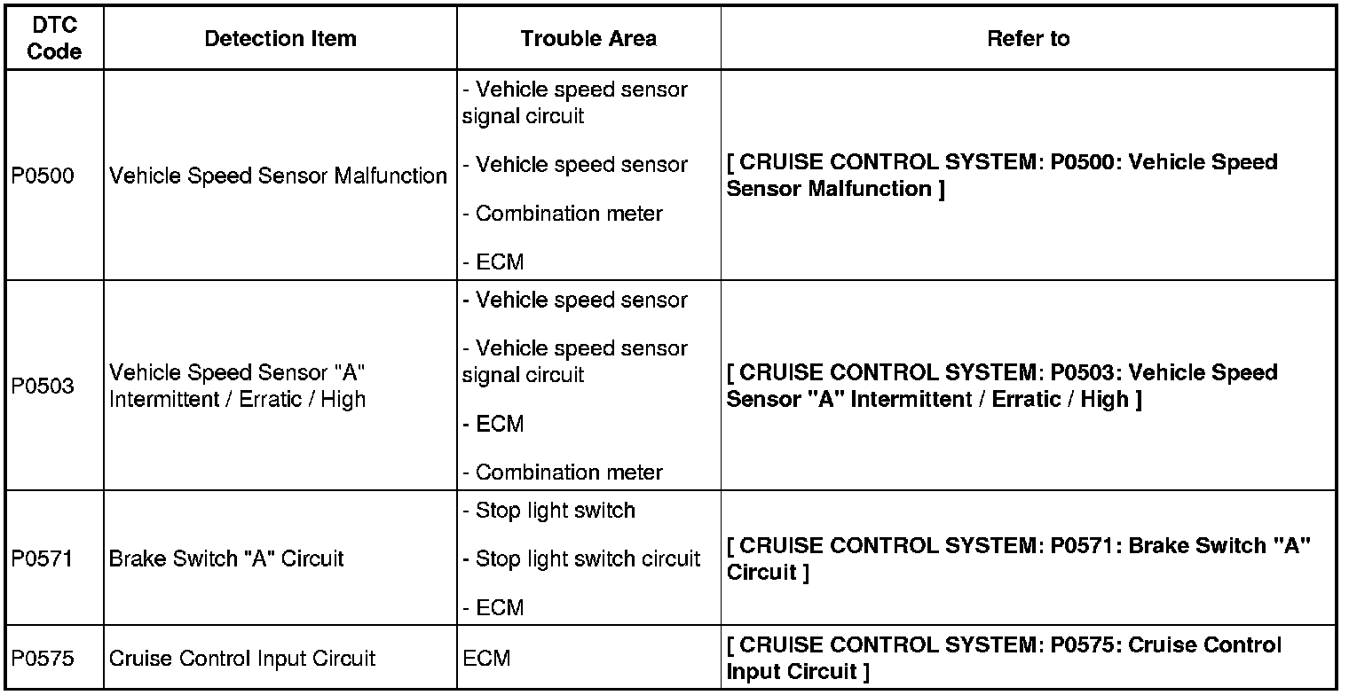 CRUISE CONTROL: CRUISE CONTROL SYSTEM: DIAGNOSTIC TROUBLE CODE CHART