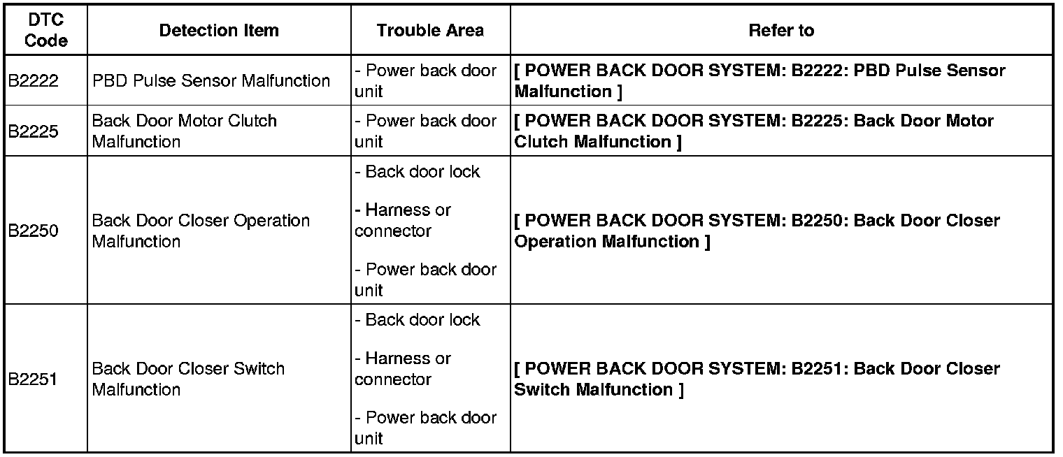 DOOR / HATCH: POWER BACK DOOR SYSTEM: DIAGNOSTIC TROUBLE CODE CHART