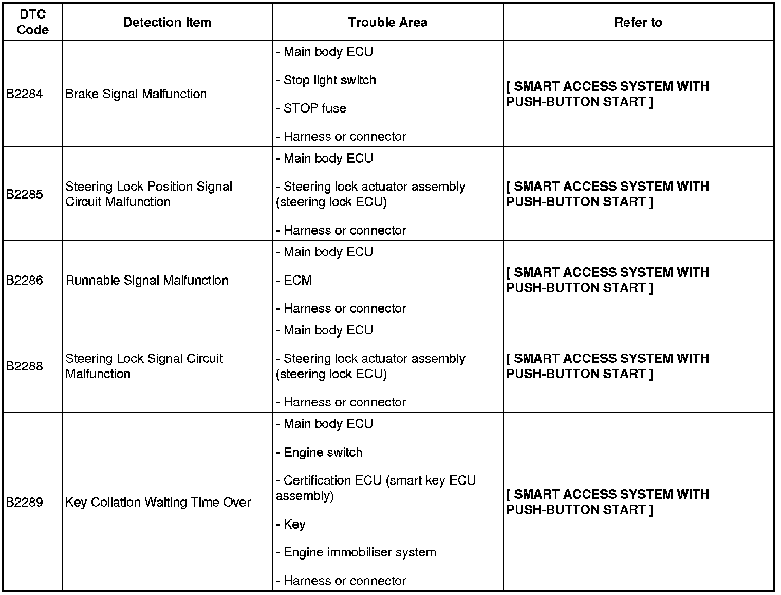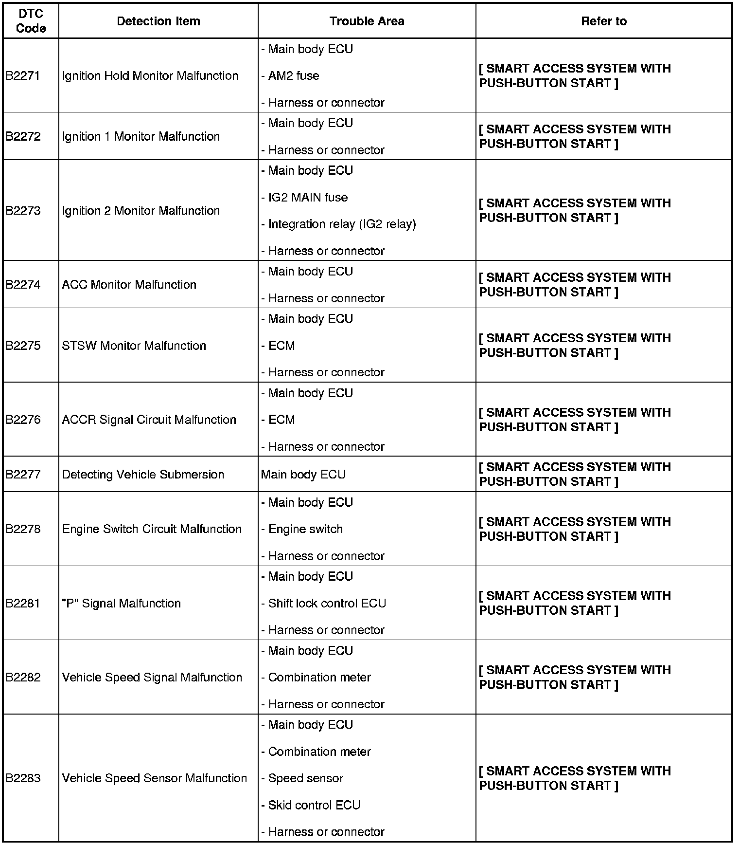 THEFT DETERRENT / KEYLESS ENTRY: SMART ACCESS SYSTEM WITH PUSH-BUTTON START (for Start Function): DIAGNOSTIC TROUBLE CODE CHART