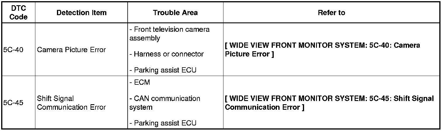 PARK ASSIST / MONITORING: WIDE VIEW FRONT MONITOR SYSTEM: DIAGNOSTIC TROUBLE CODE CHART
