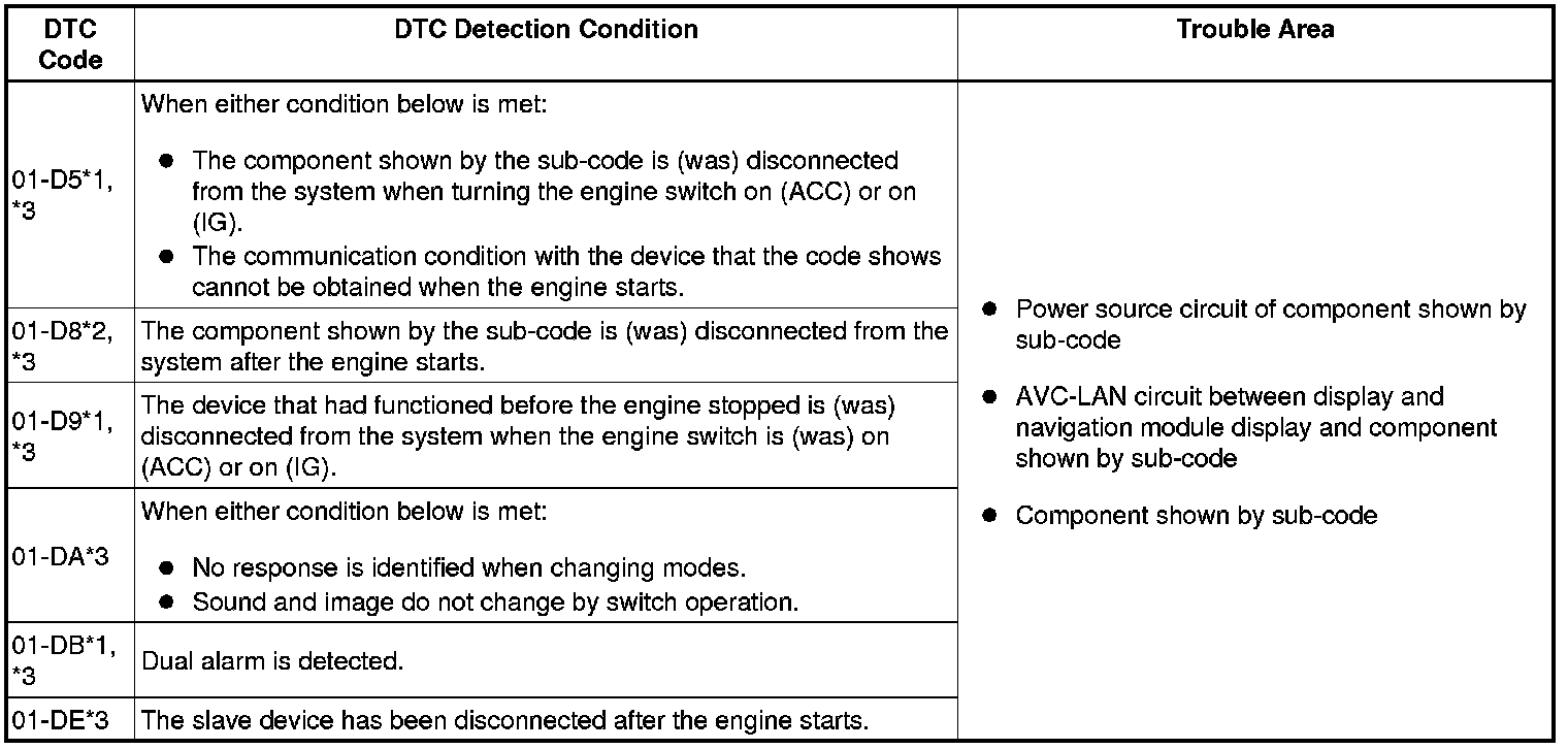 *3: If it is reported that the device does not exist during verification, check the power source circuit and AVC-LAN circuit for the device.