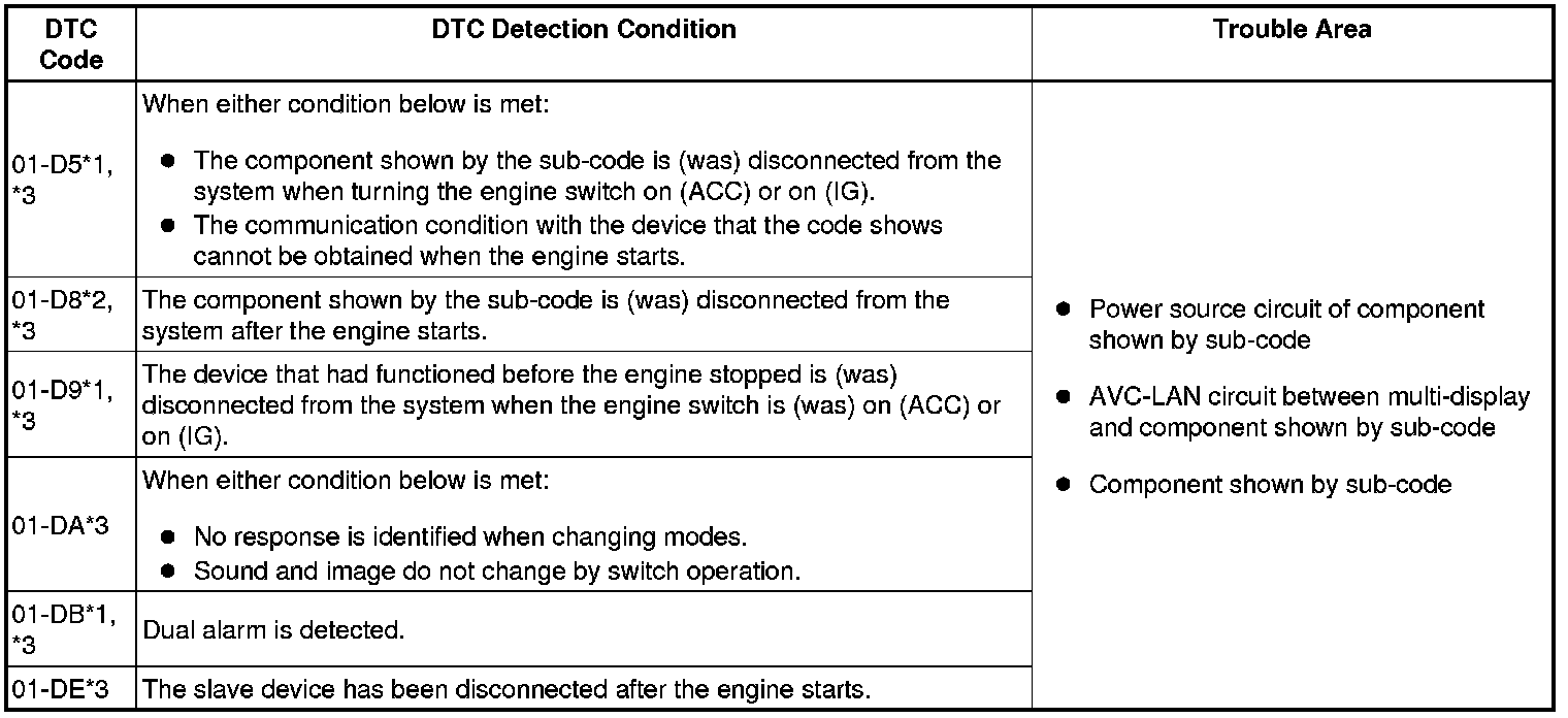 *3: If it is reported that the device does not exist during verification, check the power source circuit and AVC-LAN circuit for the device.