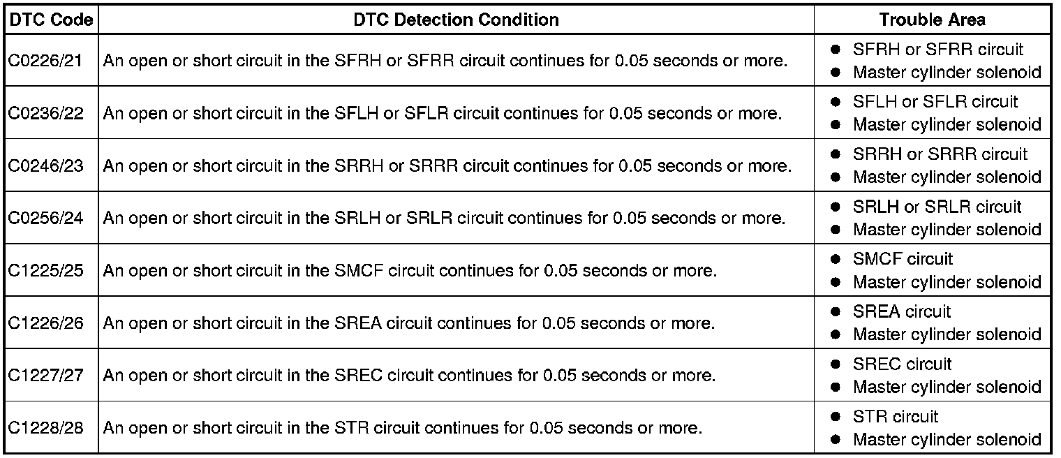 These codes are stored when a problem is detected in the master cylinder solenoid.